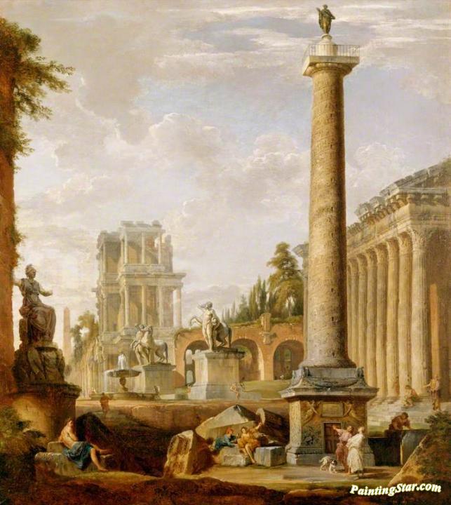 Roman Landscape with the Column of Trajan, Art Painting by Giovanni Paolo Pannini