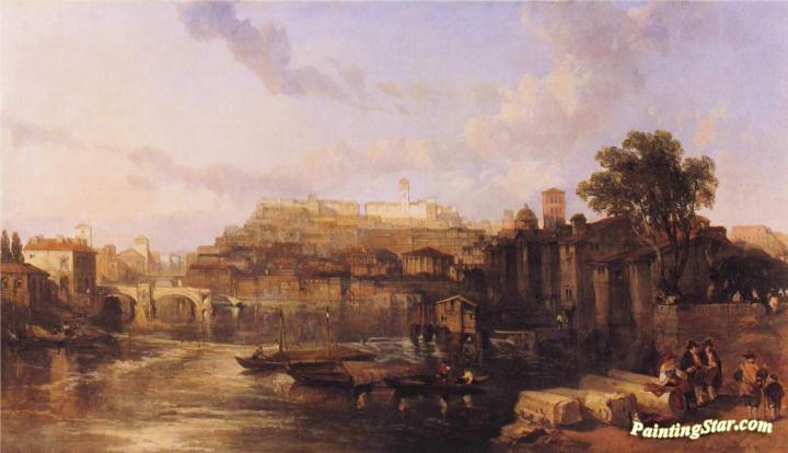 Rome, View On The Tiber Looking Towards Mounts Palatine And Aventine, Art Painting by David Roberts
