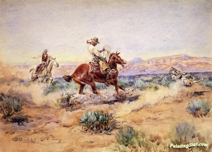 Roping a Wolf, Art Painting by Charles Marion Russell