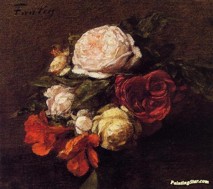 Roses and Nasturtiums, Art Painting by Henri Fantin-Latour