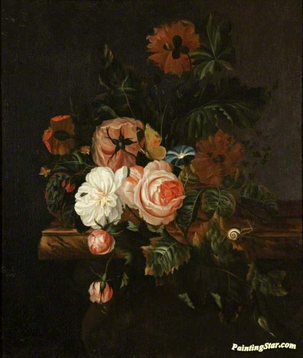 Roses and Poppies and a Snail, Art Painting by Willem van Aelst