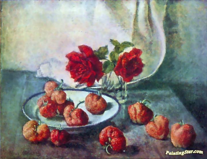 Roses and strawberries, Art Painting by Ilya Mashkov