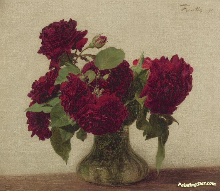 Roses Foncees Sur Fond Clair, Art Painting by Henri Fantin-Latour