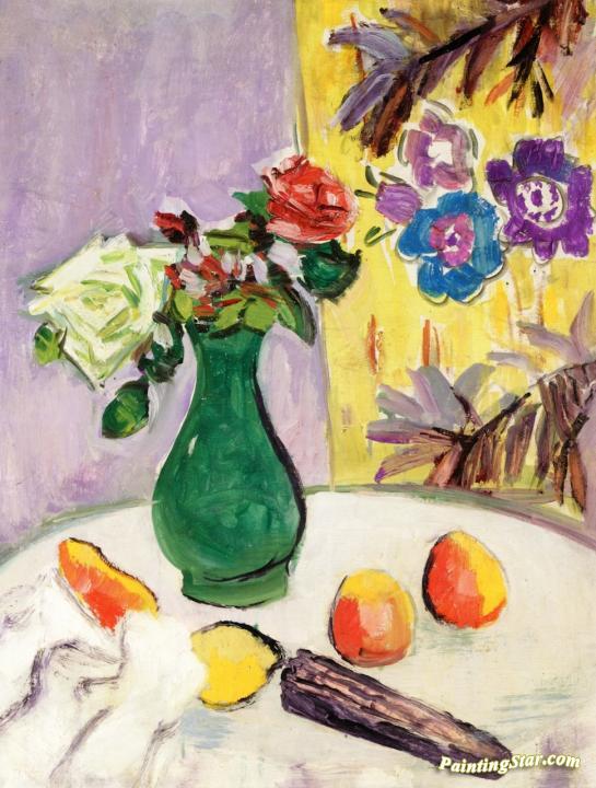 Roses in a Green Vase, Art Painting by George Leslie Hunter