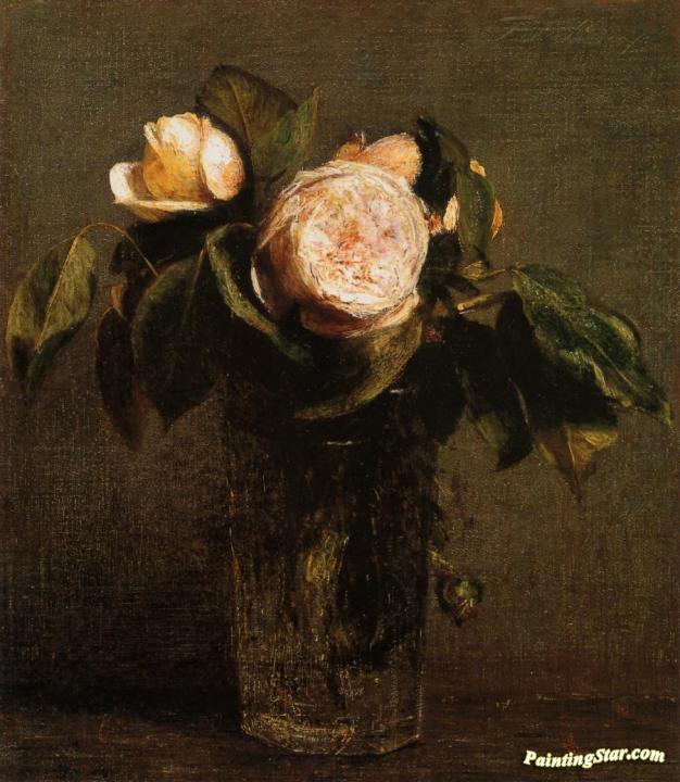 Roses in a Tall Glass, Art Painting by Henri Fantin-Latour
