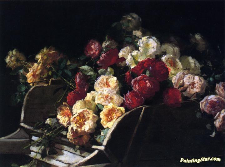 Roses In A Wheelbarrow, Art Painting by George Cochran Lambdin