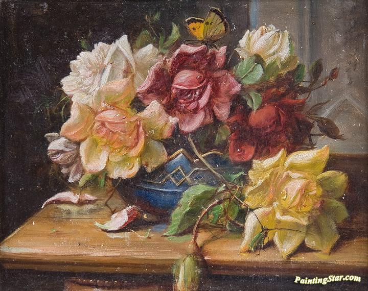 Roses in an ornamental vase, Art Painting by Hans Zatzka