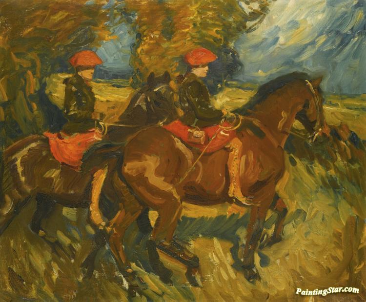 Rosie And Hazel Buxton Meeting The Dunston Harriers, Art Painting by Sir Alfred James Munnings