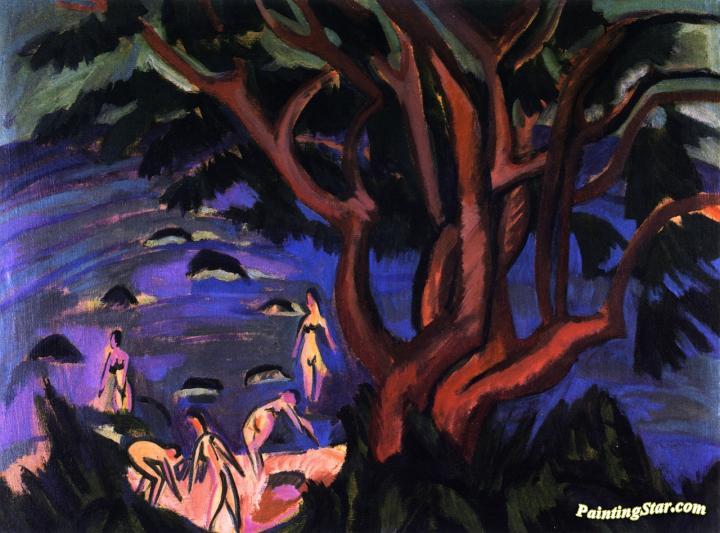 Roter Baum am Strand, Art Painting by Ernst Ludwig Kirchner