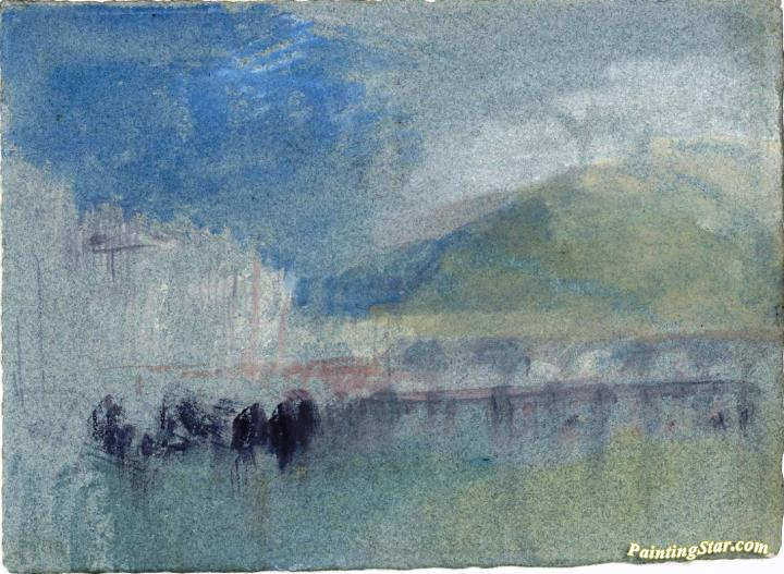 Rouen, The Bridge of Boats and the Stone Bridge, with Montagne Ste-Catherine Beyond, Art Painting by Joseph Mallord William Turner
