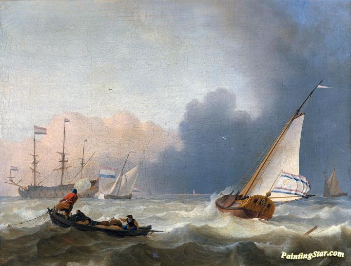 Rough sea with a Dutch yacht under sail, Art Painting by Ludolf Bakhuizen