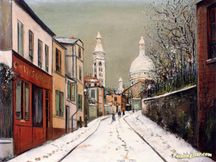 Rue de l'Abreuvoir in the Snow, Art Painting by Maurice Utrillo