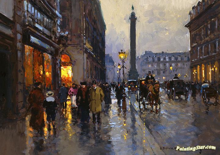 Rue de la Paix, Place Vendôme, Art Painting by Edouard Léon Cortes
