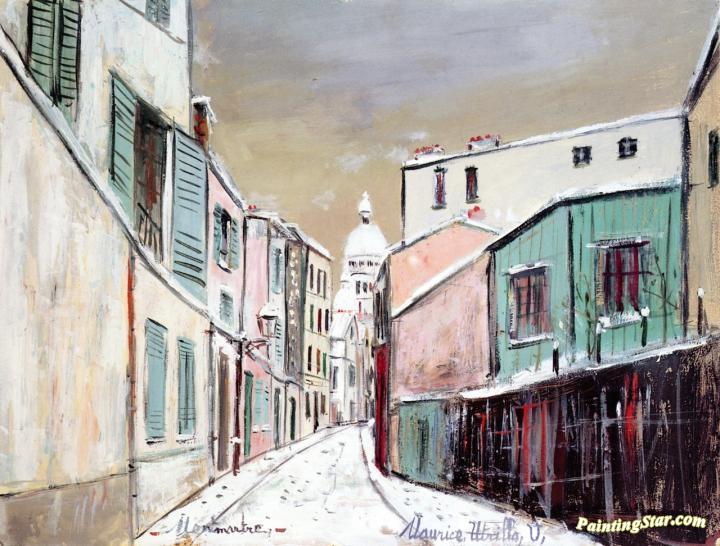 Rue Saint-Rustique in the Snow, Art Painting by Maurice Utrillo