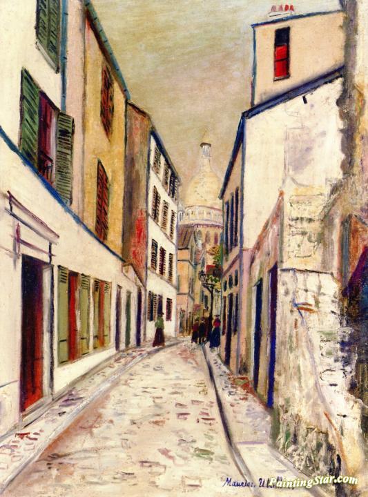 Rue Saint-Rustique, Art Painting by Maurice Utrillo
