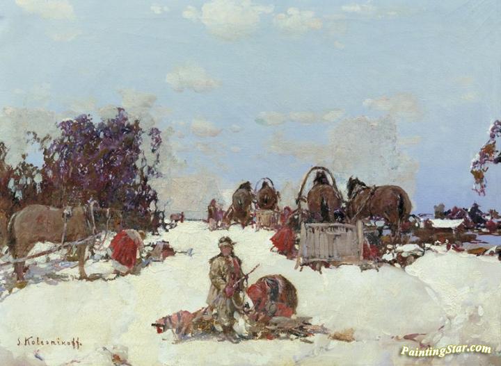 Russian Hunters, Art Painting by Stepan Kolesnikov