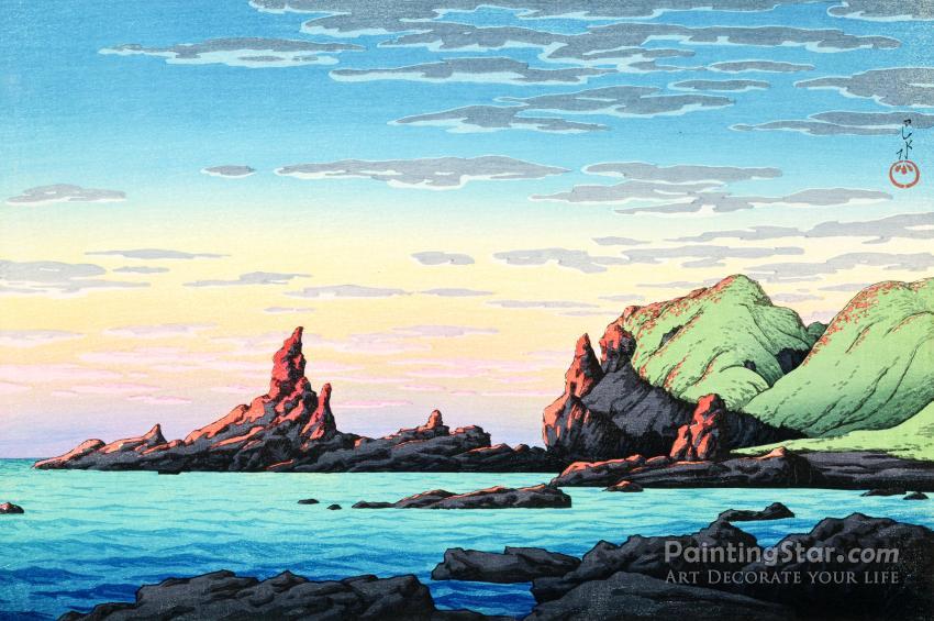Ryuga Island, Oga Peninsula, 1926, Art Painting by Hasui Kawase