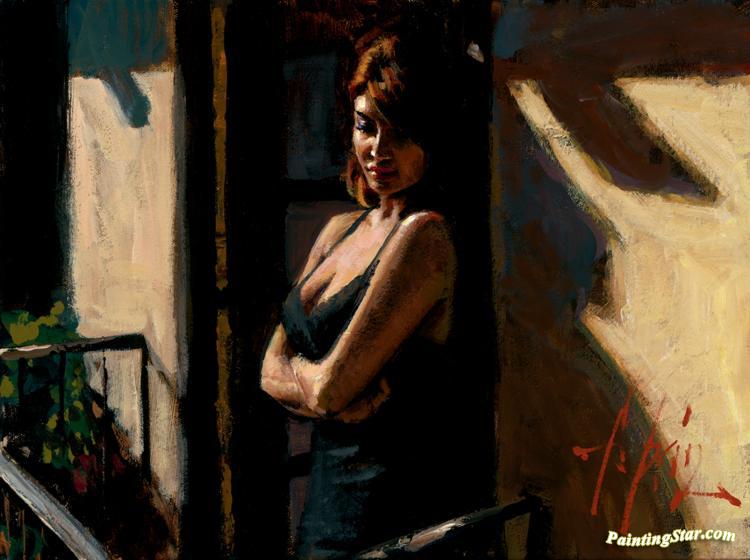 Saba At The Balcony With Black Dress, Art Painting by Fabian Perez