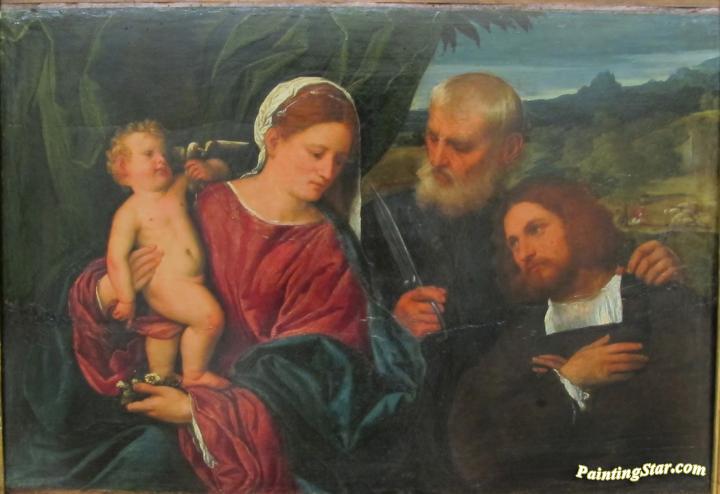 Sacred Conversation with St. Omobono and Donor, Art Painting by Paris Bordone