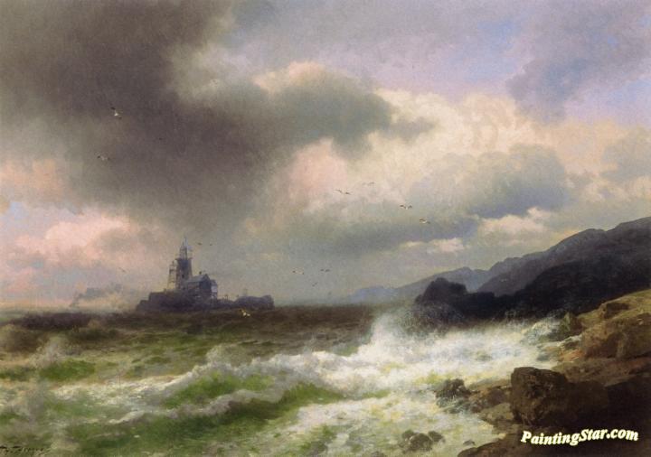Saddle Rock Lighthouse, Maine, Art Painting by Herman Herzog