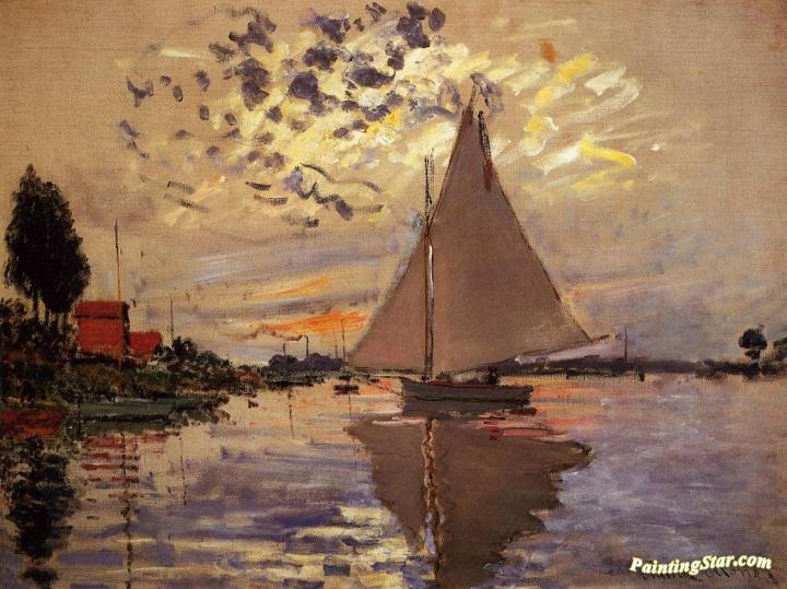 Sailboat at Le Petit-Gennevilliers, Art Painting by Claude Oscar Monet
