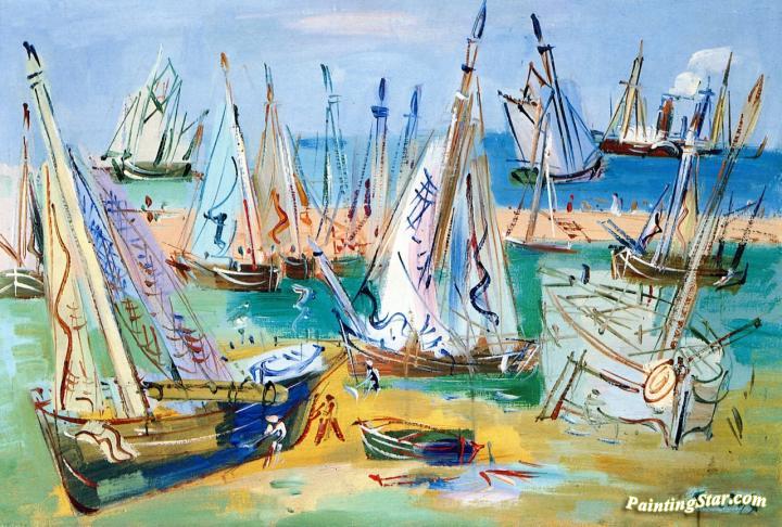 Sailboats At Low Tide, Art Painting by Jean Dufy
