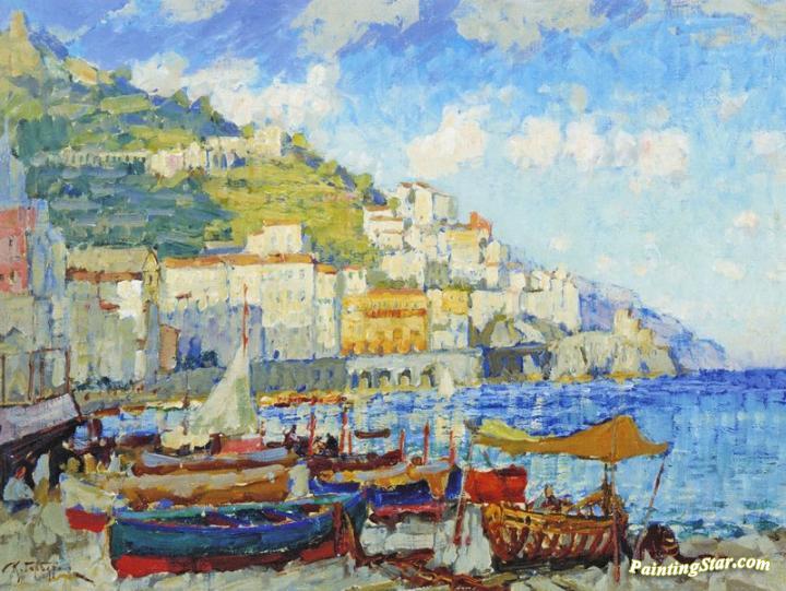 Sailboats in the Harbor, Art Painting by Konstantin Gorbatov