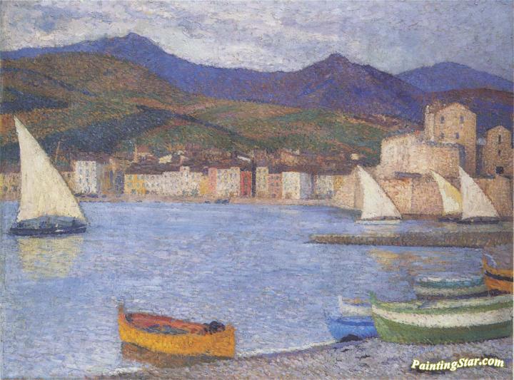 Sailboats in the Port of Collioure, Art Painting by Henri Martin