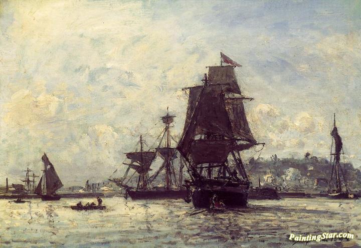 Sailing Ships at Honfleur, Art Painting by Johan Berthold Jongkind