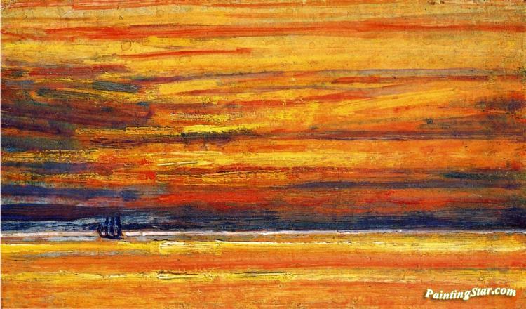 Sailing Vessel at Sea, Sunset, Art Painting by Frederick Childe Hassam