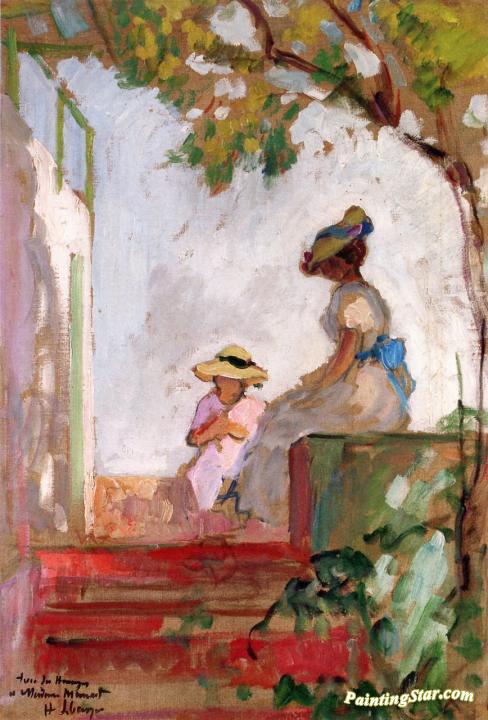 Saint Maxime, Madame Lebasque and Her Daughter on the Terrace, Art Painting by Henri Lebasque