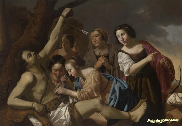 Saint Sebastian Attended By St Irene, Art Painting by Jan van Bijlert