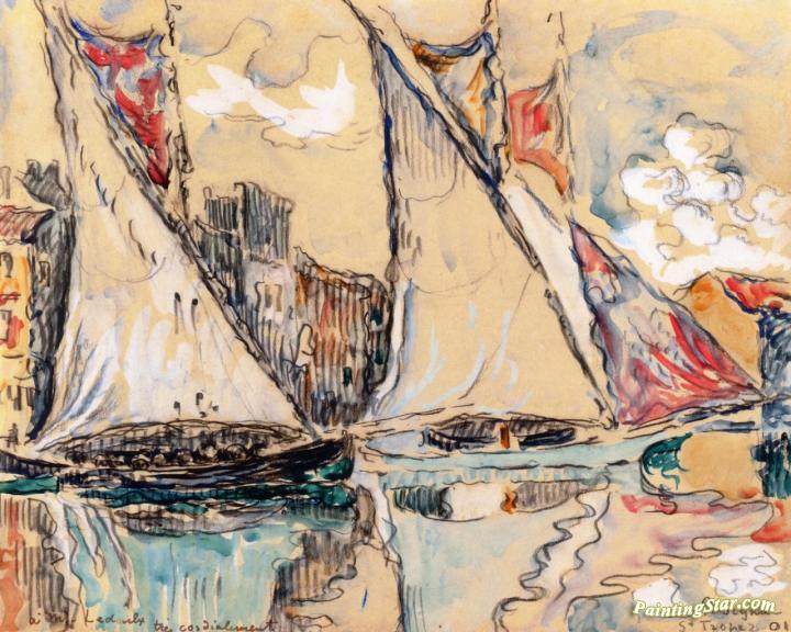 Saint-Tropez, Drying Sails, Art Painting by Paul Signac