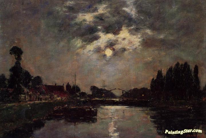 Saint-Valery-sur-Somme, Moonrise over the Canal, Art Painting by Eugène-Louis Boudin