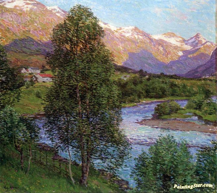 Salmon River, Norway, Art Painting by Willard Leroy Metcalf