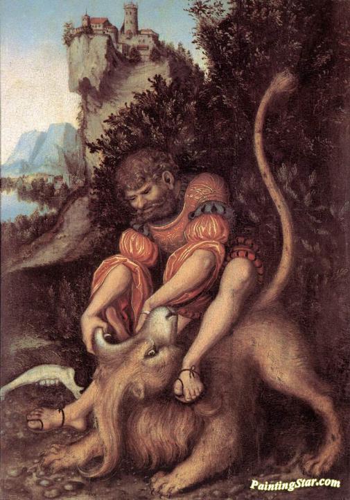 Samson's Fight with the Lion, Art Painting by Lucas Cranach the Elder