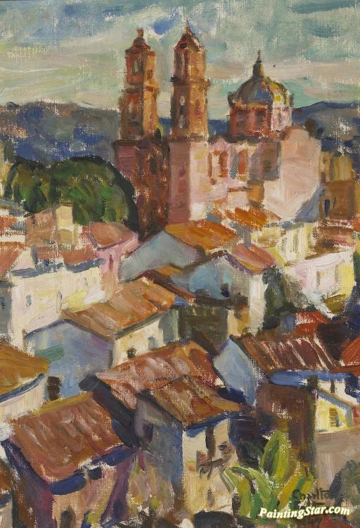 Santa Prisca Cathedral, Taxco, 1947, Art Painting by E. Charlton Fortune