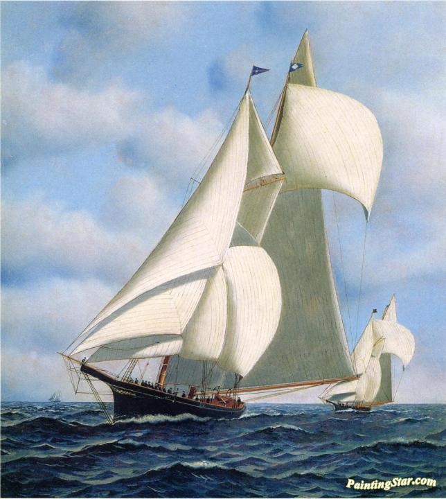 Sappho Vs. Livonia, Americas Cup, 1871, Art Painting by Antonio Jacobsen
