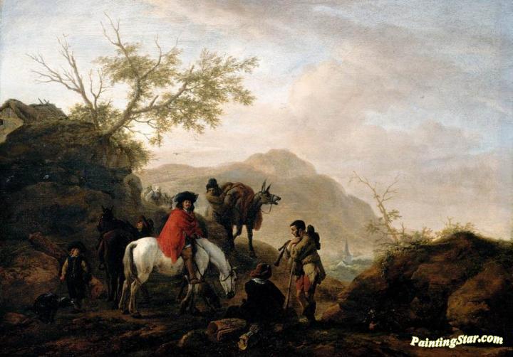 Scene on a Rocky Road, Art Painting by Philips Wouwermans