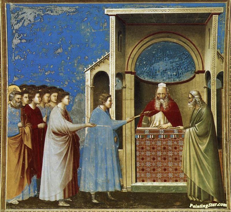Scenes From The Life Of The Virgin: 3. The Bringing Of The Rods To The Temple (cappella Scrovegni (arena Chapel), Padua), Art Painting by Giotto di Bondone