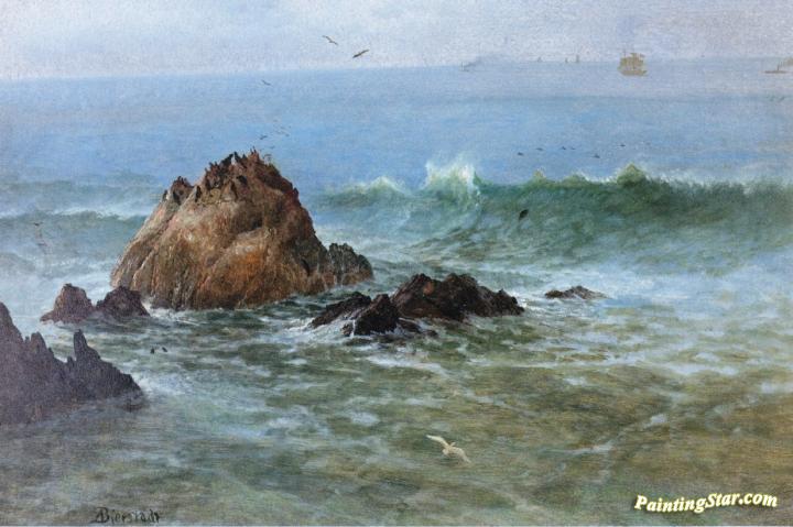 Seal Rocks off Pacific Coast, California, Art Painting by Albert Bierstadt