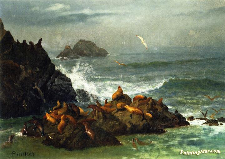 Seal Rocks, Pacific Ocean, California, Art Painting by Albert Bierstadt