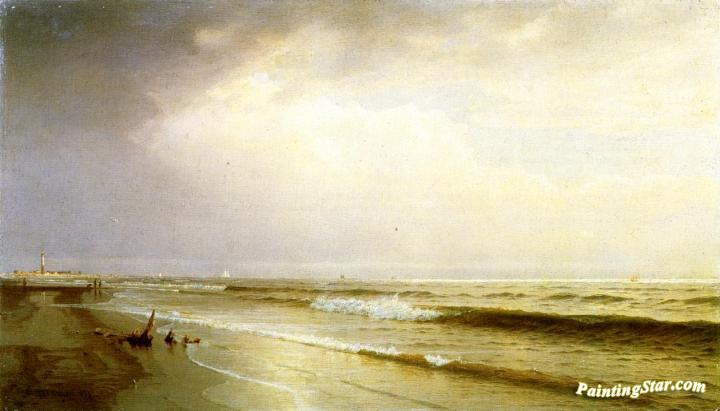 Seascape with Distant Lighthouse, Atlantic City, New Jersey, Art Painting by William Trost Richards