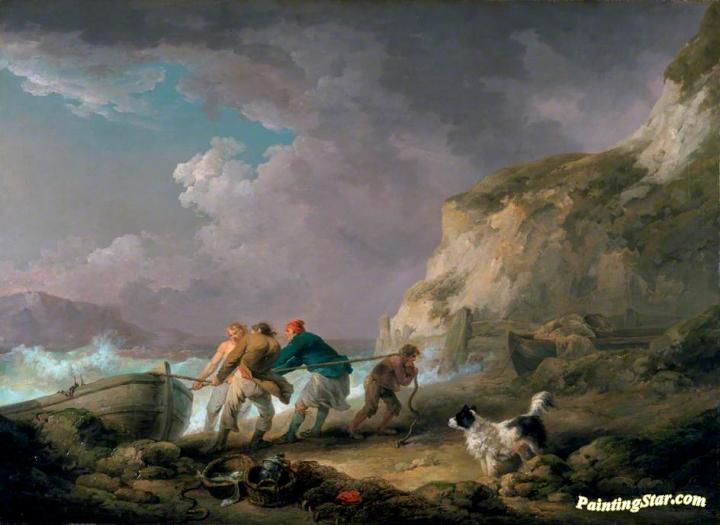 Seashore: Fishermen Hauling In A Boat, Art Painting by George Morland