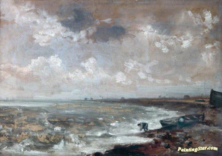 Seashore with Fishermen near a Boat, Art Painting by John Constable