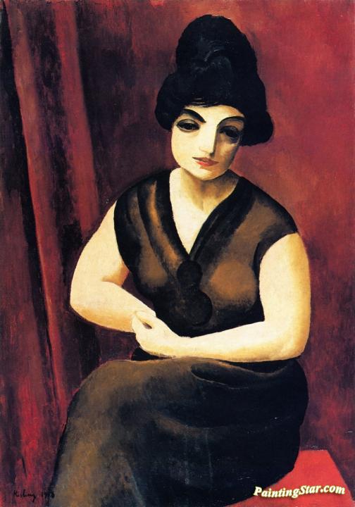 Seated Brunette, Art Painting by Moise Kisling