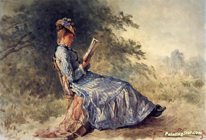 Seated Girl Reading, Art Painting by Hugh Newell
