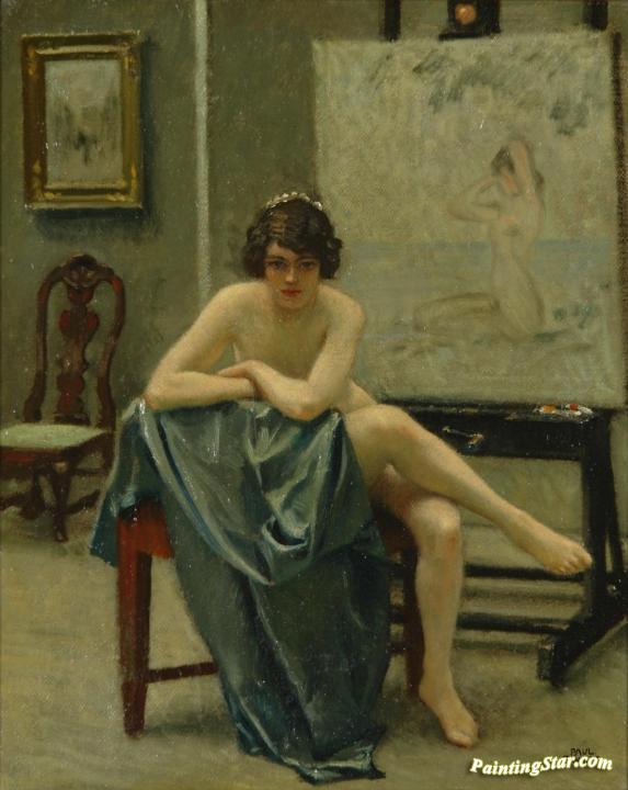 Seated model in the artist's studio, Art Painting by Paul Gustave Fischer