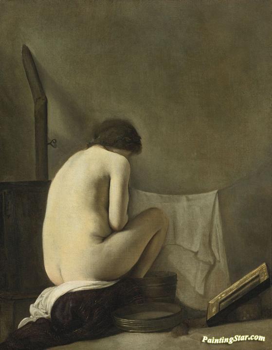 Seated Nude Bathing by the Stove, Art Painting by Paulus Bor