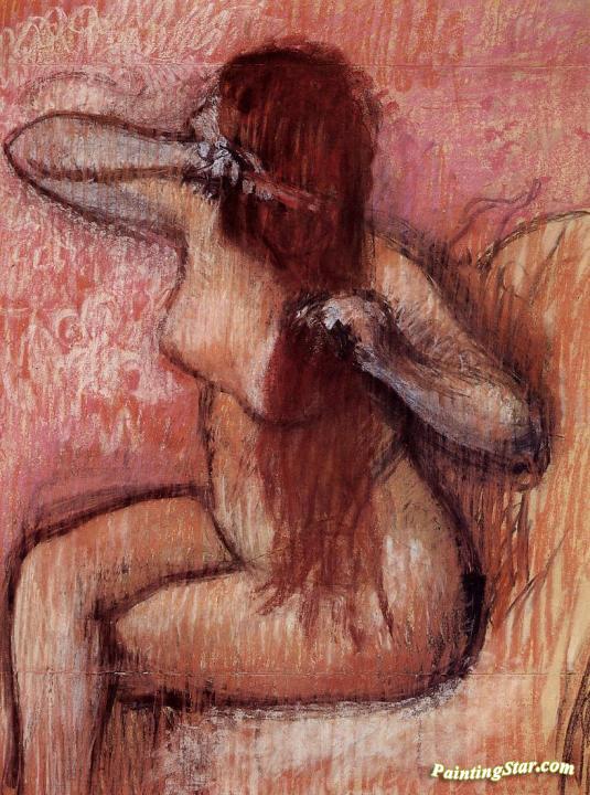Seated Nude Combing Her Hair, Art Painting by Edgar Degas